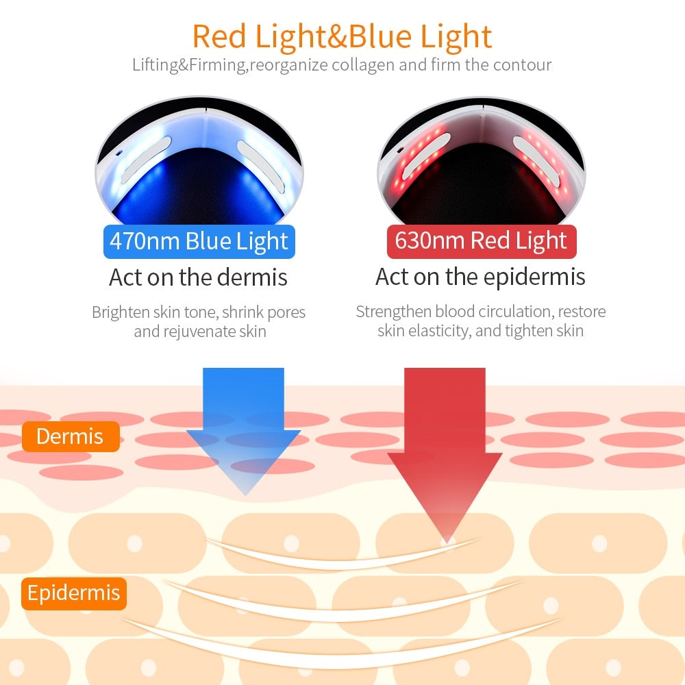2 Photon Modes: Blue light mode for acne removal, Red light mode for flat wrinkle skin. 2 lights work together for comprehensive skin care.